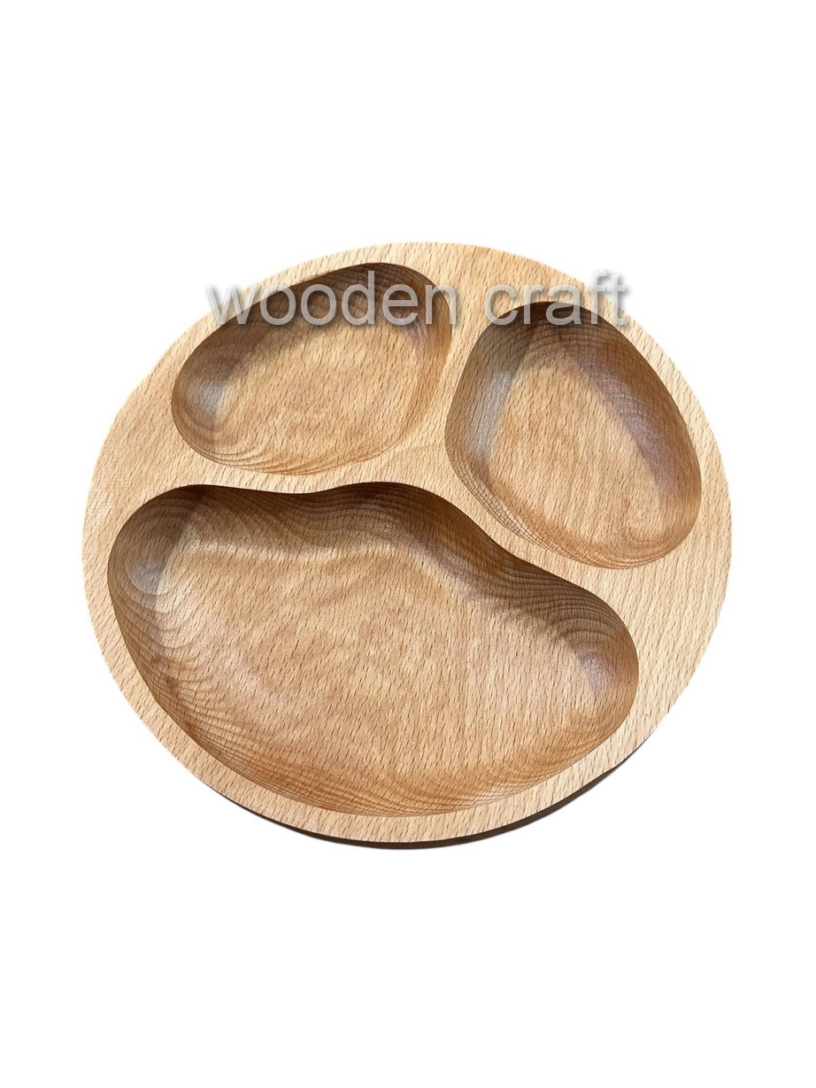Cele trei compartimente permit separarea alimentelor, încurajând o alimentație variată și echilibrată într-un mod plăcut și educativ. Forma simpatică și textura naturală o fac atractivă atât pentru copii, cât și pentru părinți.