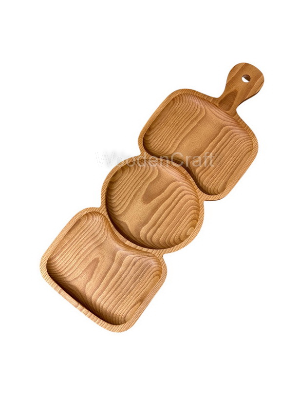 Acest platou elegant din lemn de fag este perfect pentru prezentarea felurilor de mâncare într-un mod unic și atractiv. Designul său rafinat cu compartimente distincte permite separarea alimentelor, fiind ideal pentru aperitive, gustări sau deserturi.