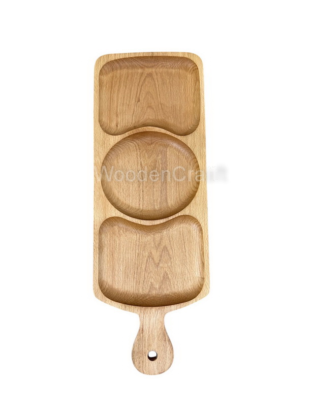 Acest platou elegant din lemn de fag este perfect pentru prezentarea felurilor de mâncare într-un mod unic și atractiv. Designul său rafinat cu compartimente distincte permite separarea alimentelor, fiind ideal pentru aperitive, gustări sau deserturi.