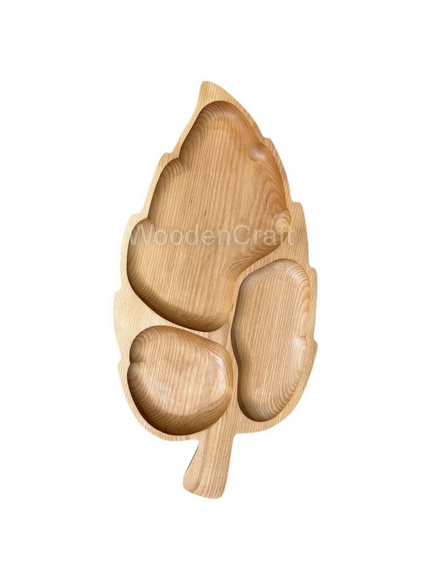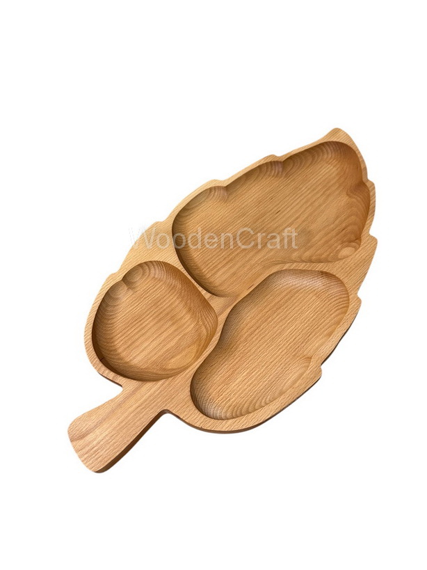 Acest platou din lemn cu formă de frunză este o piesă de servire elegantă și practică, inspirată din natură. Cele patru compartimente distincte permit aranjarea armonioasă a diferitelor gustări sau ingrediente fără a le amesteca, oferind o prezentare estetică și organizată.